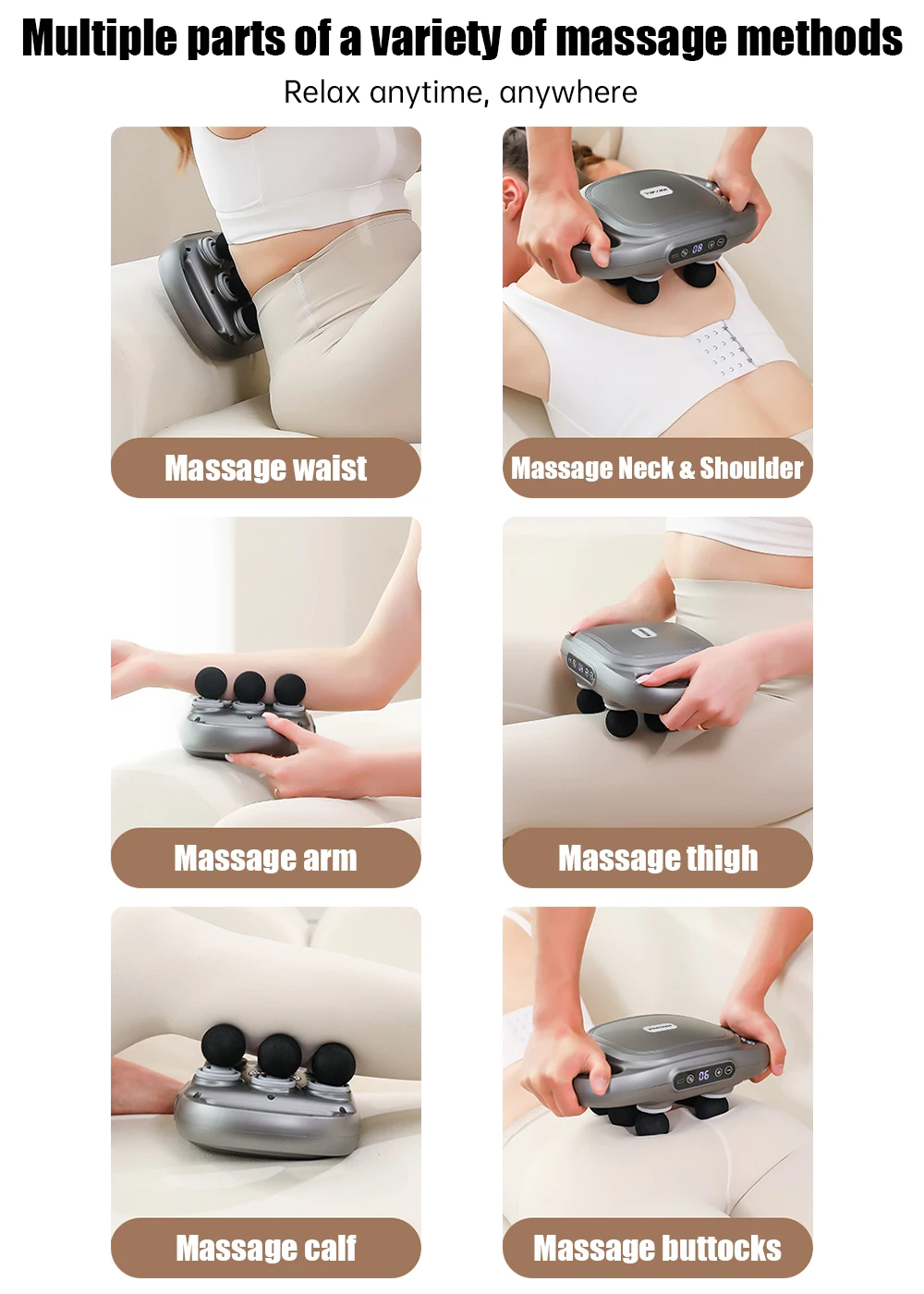 7.Large-capacity battery.The electric massager uses 2000mAh large-capacity battery, the charging time is about 1-2 hours, and it can be used for 2-3 hours after full charge